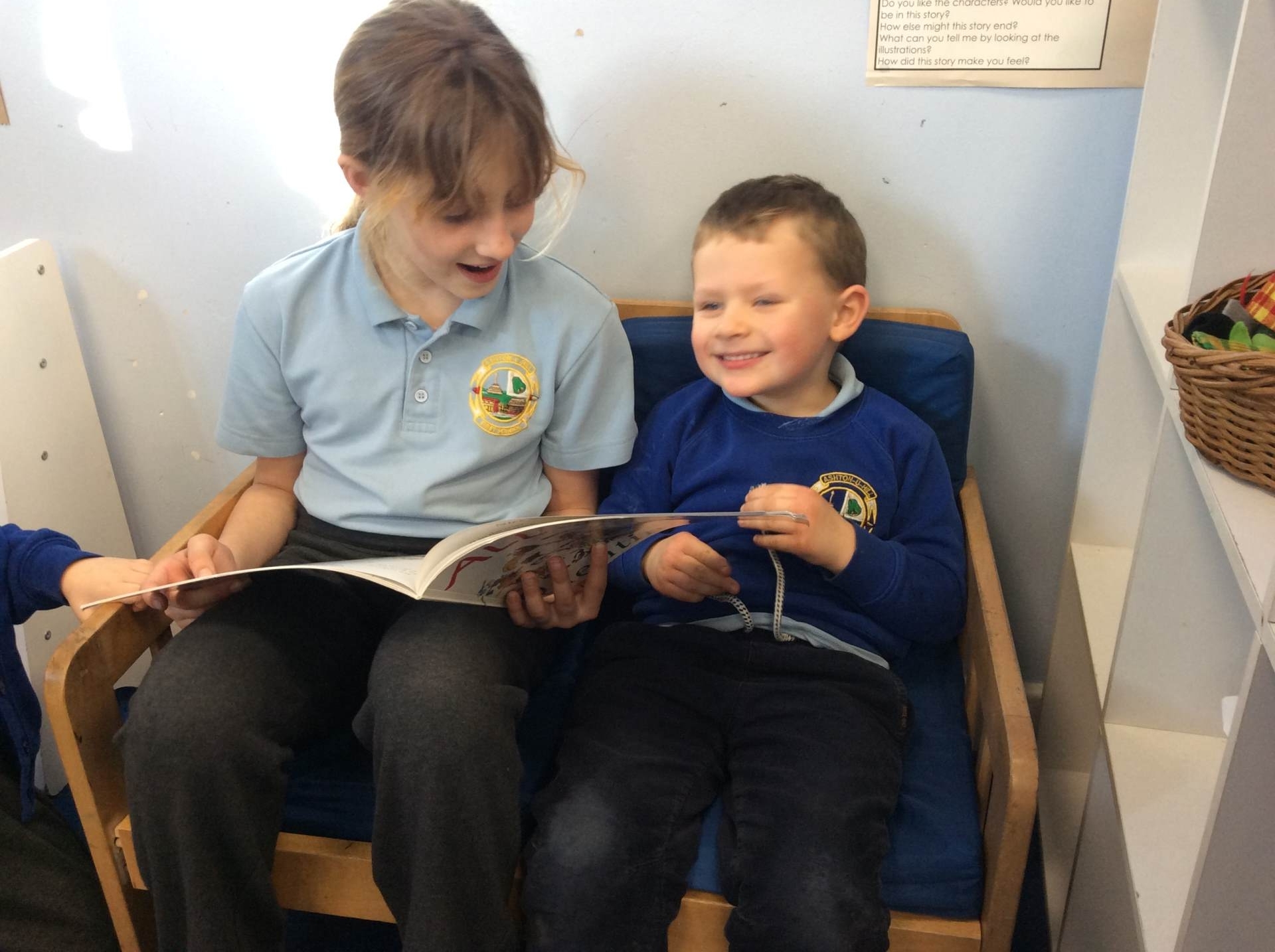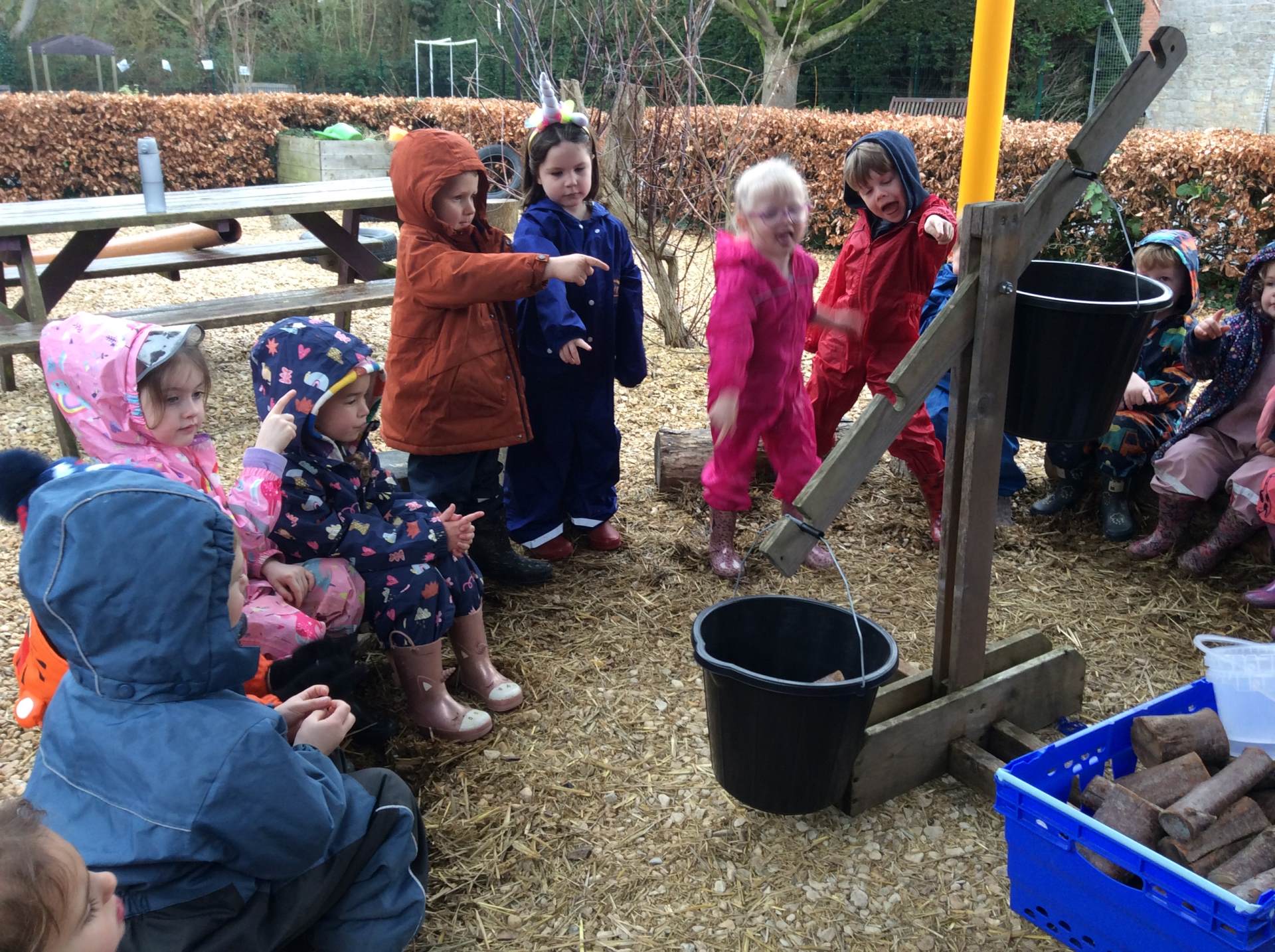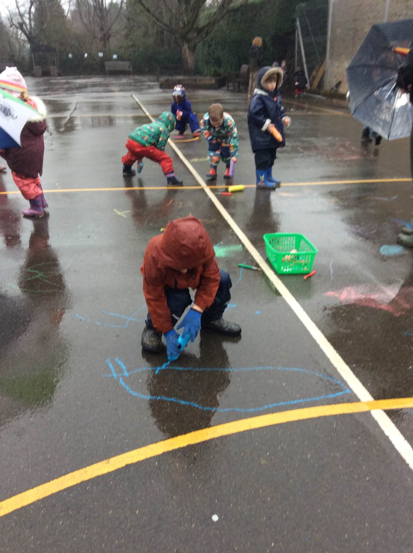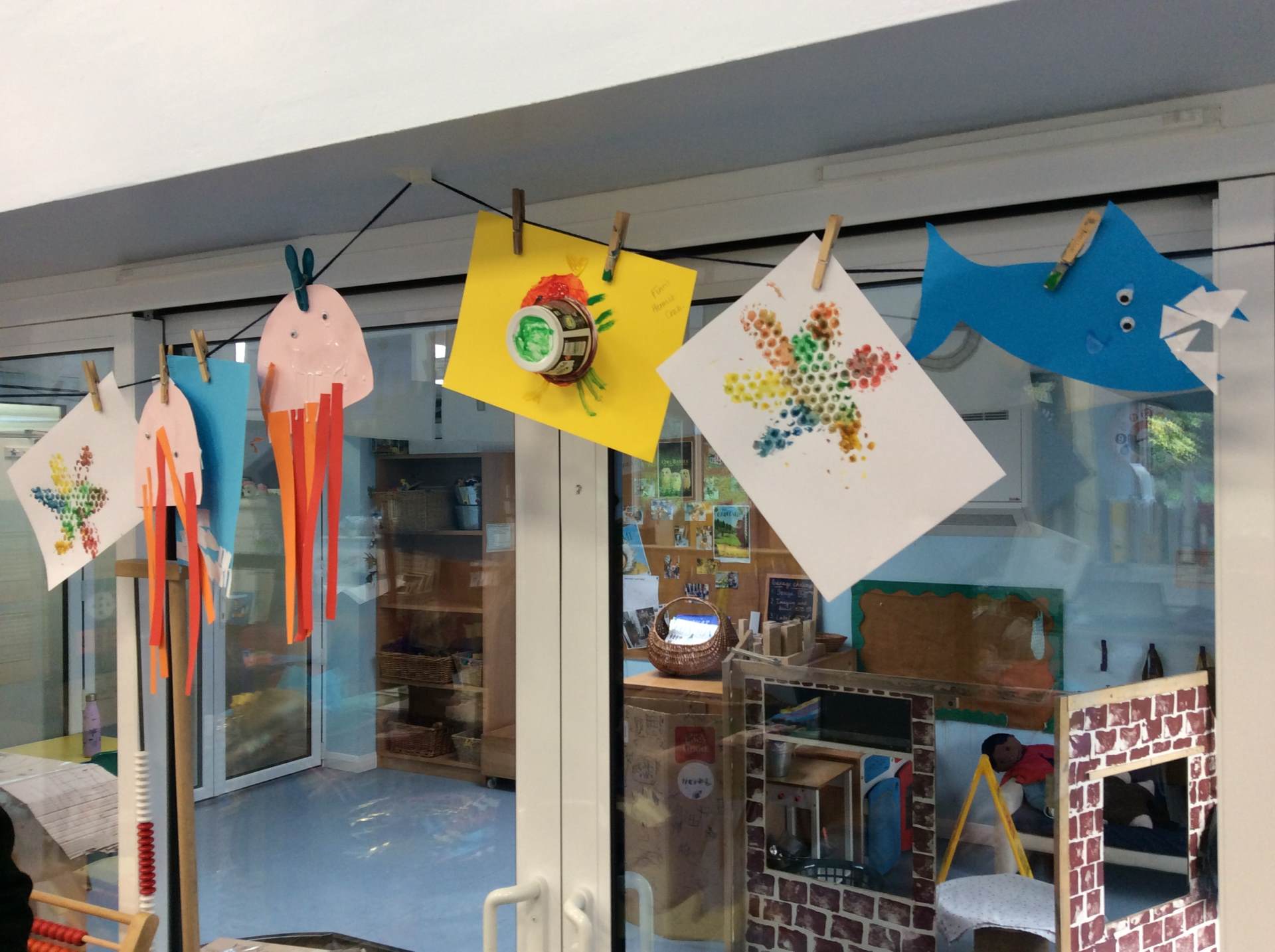 What a wet few weeks we’ve had! We have tried to make the most of the wet weather and embrace it as part of our learning, we have enjoyed singing in the rain, taking cover under umbrellas and making art with wet chalk. In our outdoor learning sessions we have been bird spotting and making bird feeders from apples. We had a brilliant forest school session a couple of weeks ago with Miss Young where we used big branches from around the orchard site to build a boat, made willow fish and had fun making the Lighthouse Keeper’s lunch in a picnic basket to send along a rope to each other.