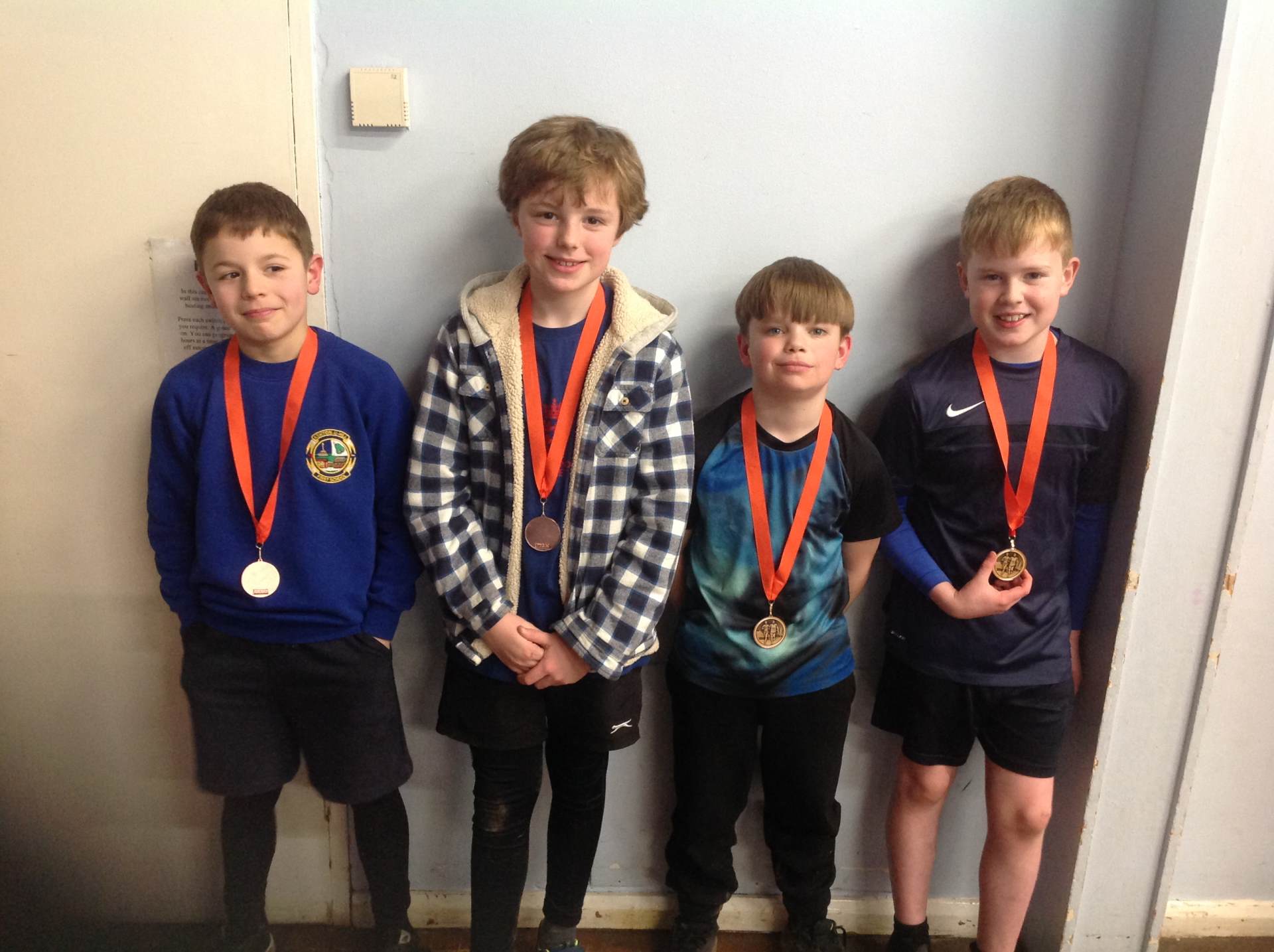 I was extremely proud of the children's sports man ship and resilieance. They cheered each other on and encouraged those who found it tricky in a very caring and supportive manor. I am pleased to say every child completed the course! 1km for the year 4,s and a very muddy 1.5km for the year 5's. As you can see we even came home with lots of medals.......... well done to the Year 4 and the Year 5 boys teams and to Josh who got an individual medal.